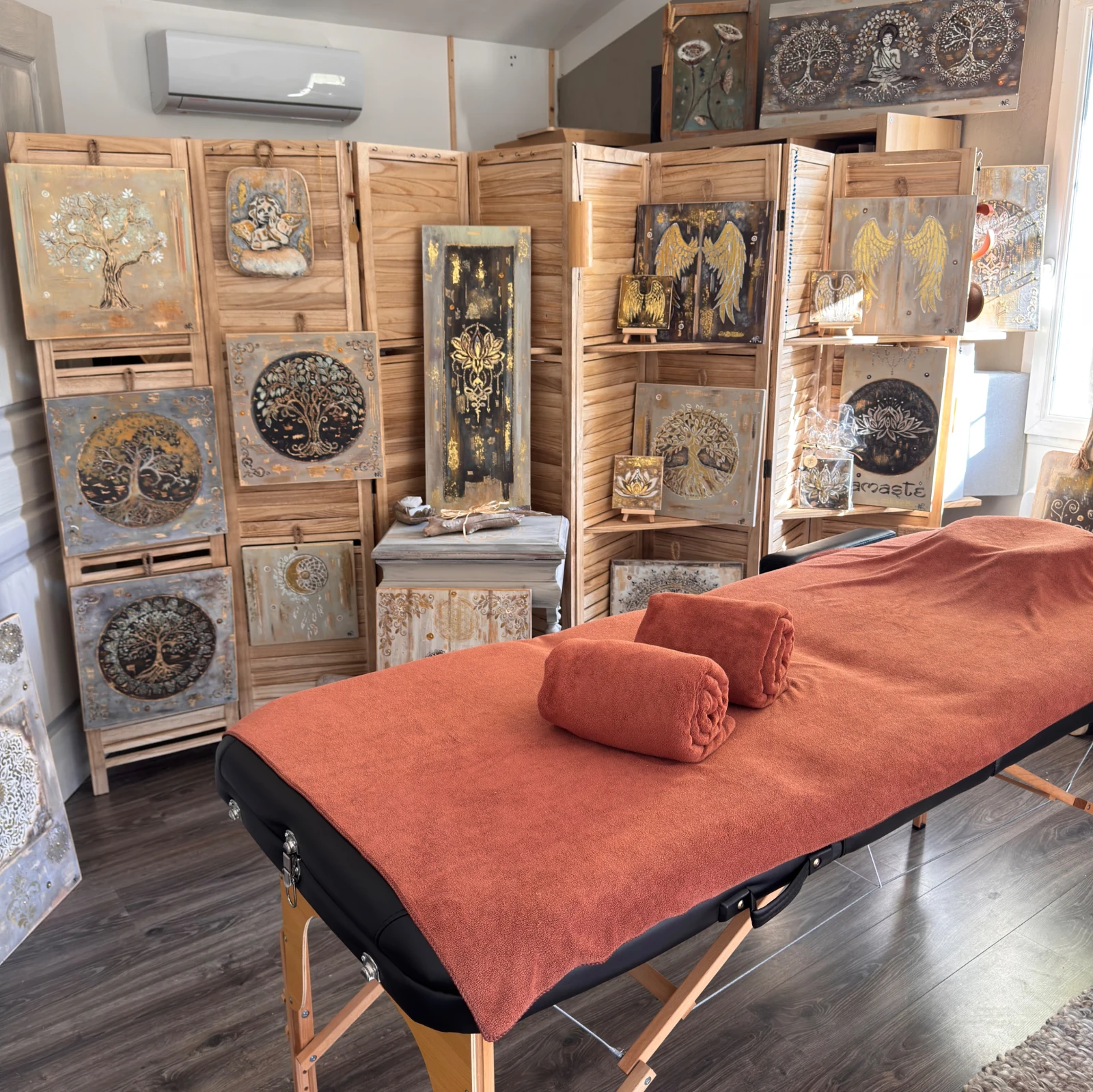 Bienvenue dans mon univers, un espace où l’art et l’énergie se rencontrent pour apporter douceur, apaisement et lumière dans votre quotidien.